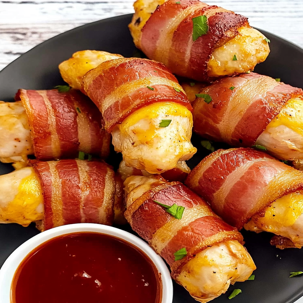 - Reheating: To reheat, place BACON WRAPPED CHICKEN TENDERS in an oven preheated to 350°F (175°C) for about 15-20 minutes until heated through. This method helps retain their crispy texture.