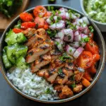 Savor the vibrant flavors of this Chicken Shawarma Bowl, featuring marinated grilled chicken, fresh vegetables, and a creamy tahini sauce. This nutritious dish comes together in just 30 minutes, making it perfect for busy weeknights or meal prep. Customize it with your favorite toppings for a delightful and satisfying meal that will impress family and friends alike.