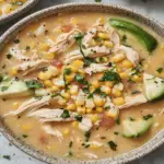 Street Corn Chicken Chili features several key ingredients that come together to create a deliciously rich and hearty meal. The base includes tender shredded chicken and sweet corn, along with spices like chili powder and cumin that add depth to the flavor profile. Alongside these main components, you’ll often find bell peppers, onions, garlic, and tomatoes included for additional texture and taste. Toppings such as avocado slices, fresh cilantro, crumbled cheese, or lime wedges are often added before serving to elevate the dish further.